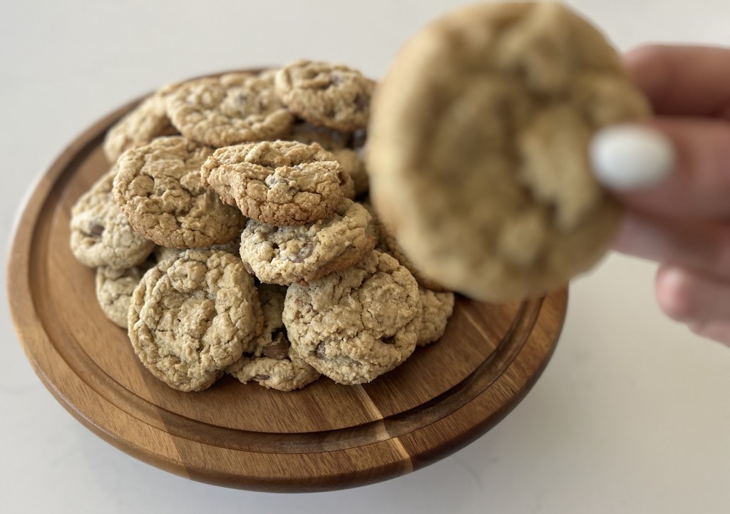 This is hands-down my most requested recipe—and for good reason. It’s my mom’s chocolate chip cookie recipe, and I’ve been enjoying these cookies for as long as I can remember. They have the rich, nostalgic flavor of classic oatmeal cookies, but with a twist: the oats are blended, which gives the cookies an irresistibly soft, gooey texture. Think the best parts of oatmeal and chocolate chip cookies in one perfect bite.