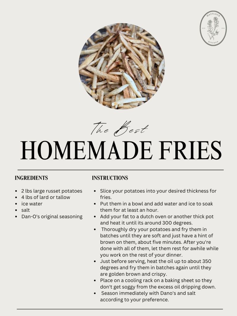 Whether you’re serving them with burgers or as a standalone snack, fries cooked this way are next-level. Once you taste the difference, you may never go back to frozen fries or canola oil again.